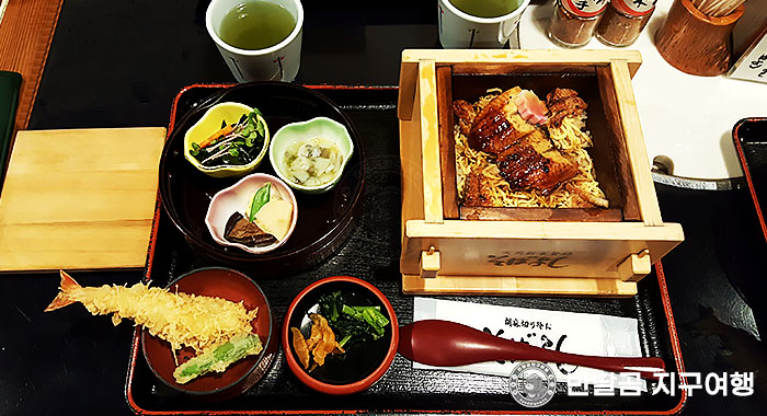 저녁식사로 장어덮밥이 나왔는데, 장어를 잘 못 먹어서 다른 것만 열심히 먹었습니다.