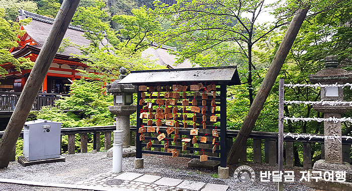 청수사 약수는 세 줄기의 샘물이 기와 기둥에서 흘러내리는데, 3개의 물줄기 중에 1개의 물만 마실 수 있다고 합니다.