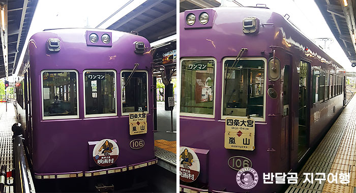 예쁜 보랏빛 린덴 열차도 구경하고, 귀여운 리락쿠마랑 사진도 찍고, 도게츠교도 구경하고, 아라시야마역에서 시원한 음료수 한잔 마시고, 점심 식사 장소로 이동합니다.