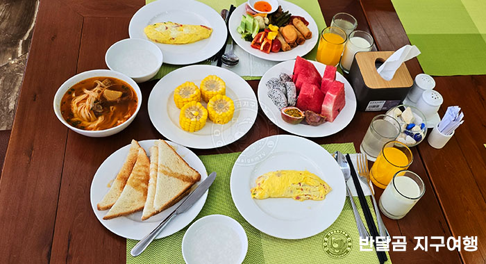 조식은 뷔페식으로 제공되는데, 많지는 않아도 다양한 메뉴가 있어서 괜찮았고, "Neng"이 만들어 주는 오믈렛은 꼭 드셔보시길 추천합니다. 가볍게 쌀국수도 먹을 만해요.