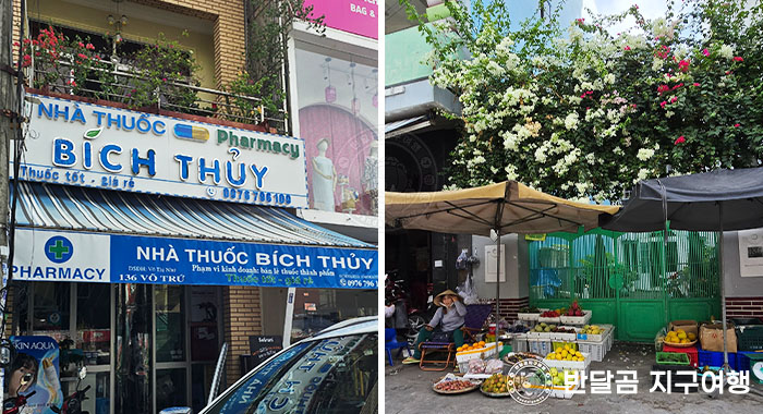 나트랑 과일시장 방향으로 걸어가니 씀모이가든이 보이고, 그 옆쪽에 BICH THUY 약국이 있어요.