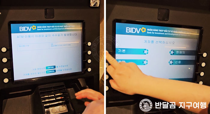 베트남 나트랑 여행 시 현금을 소지하고 다니면 가장 편하긴 하지만 화폐의 단위가 크기도 하고, 종류가 많아서 현금을 가지고 다니기가 쉽지 않답니다. 그래서 반달곰 지구여행은 현금이 필요할 때마다 가까운 ATM에서 1.000.000 ~ 2.000.000 vnd정도를 출금해서 사용을 했답니다. 주로 사용했던 카드는 트래블로그 체크카드인데, 파나마 나트랑 호텔 아주 가까운 곳에 BIDV ATM 출금기가 있어서 아주 빠르고 편하게 이용했답니다.
