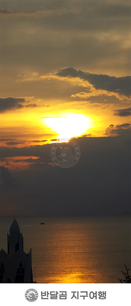해변 가까운 곳에 앉아서 일출을 기다립니다. 낮게 깔린 구름들 사이로 붉은 태양의 빛이 조금씩 떠오르고, 이 세상에서 다시는 볼 수 없는 오늘의 일출이 아름답게 베트남 나트랑 하늘을 물들이고 있습니다.