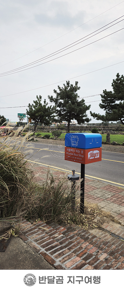 호텔 앞에 셔틀버스 정류장 표시가 있고, 제주국제공항으로 갈 때는 이곳에서 버스를 타면 된답니다.