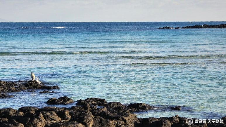 맑은 바닷물에 아름다운 제주 하늘이 담겨 있네요.